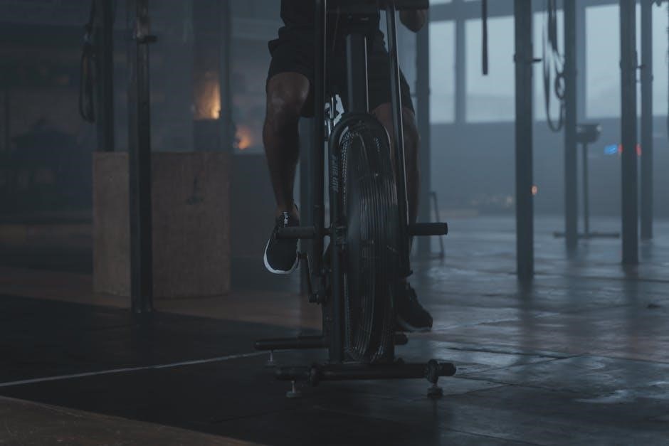 The console, a central hub, displays workout metrics like time, speed, distance, and calories burned. Foot pedals equipped with straps secure your feet, optimizing power transfer. Regular maintenance, as outlined in the service manual, focuses on lubricating key areas and checking chain tension. Understanding these components, and their proper function, is vital for safe and effective use. The manual provides diagrams and explanations to help users identify and maintain each part, maximizing the bike’s performance and longevity.